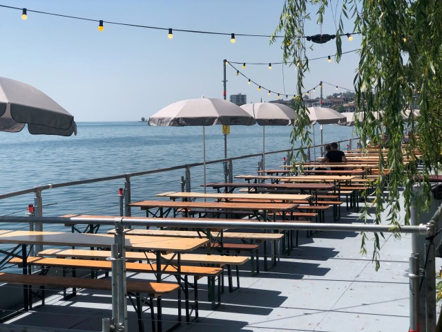 Hay lugares donde puedes sentarte a recobrar el aliento y tomar algo.