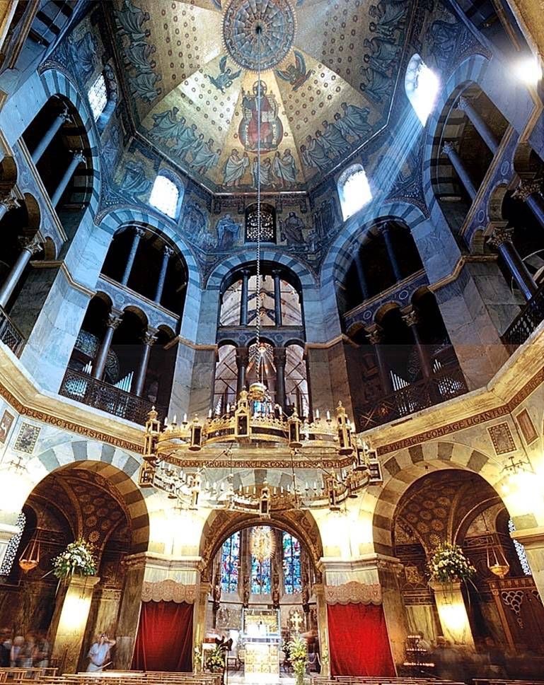 Con sus columnas de mármol griego e italiano extraídos de edificios de Rávena y Roma , sus puertas de bronce, y el mayor mosaico de la cúpula (hoy restaurado), la Capilla Palatina ha sido considerada como una creación artística excepcional. Fue la primera estructura abovedada que se construyó al norte de los Alpes, lo que la hace maravillosa desde la antigüedad. Es mágica, sientes que te abraza, a pesar de su tamaño, es cálida y acogedora!.
