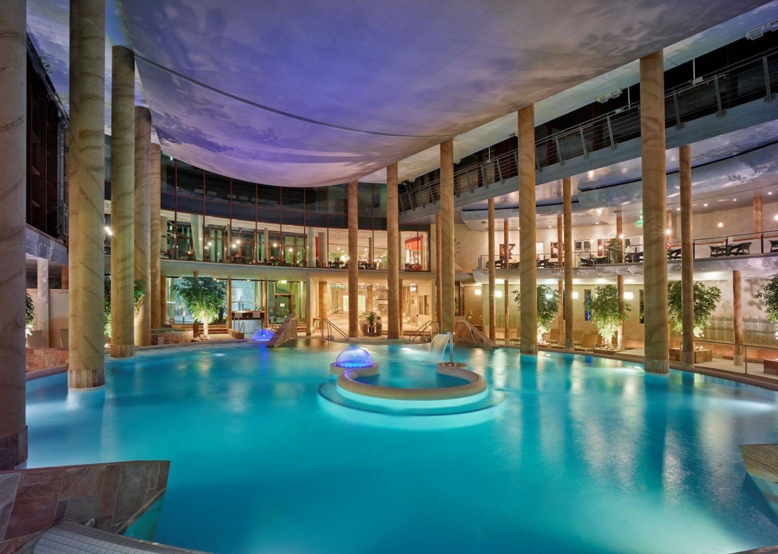 Bajo el lema Sanus per Aquam, Carolus Thermen es un espacio pensado para la relajación presidido por una gran piscina interior con diferentes áreas de chorros y burbujas circundada por columnas, en un claro guiño al pasado de termas romanas de Aquisgrán. El recinto también cuenta con un par de piscinas exteriores -una de ellas con zona de playa-, salas de relajación y sauna, además de una zona gastro.