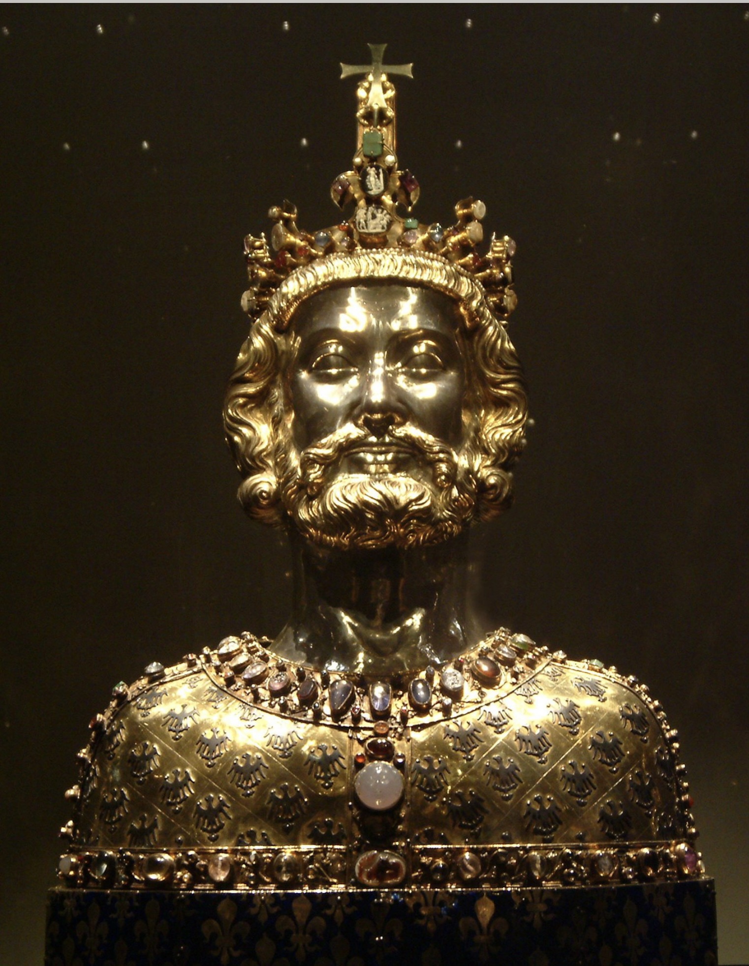 Tambien hay piezas muy interesantes y de gran valor religioso en su museo, como la cruz de Lothair, considerada como una obra de arte de la Edad Media. El relicario de Carlomagno, la carátula de un libro que pertenecía a la escuela palatina de este personaje en la ciudad, que tiene mármol tallado y en la que se muestran escenas de la resurrección de Jesús. La que se considera la pieza más famosa de este sitio es un Busto de Carlomagno, en la que se le ve imponente y uniendo las tradiciones francesas y alemanas clásicas.