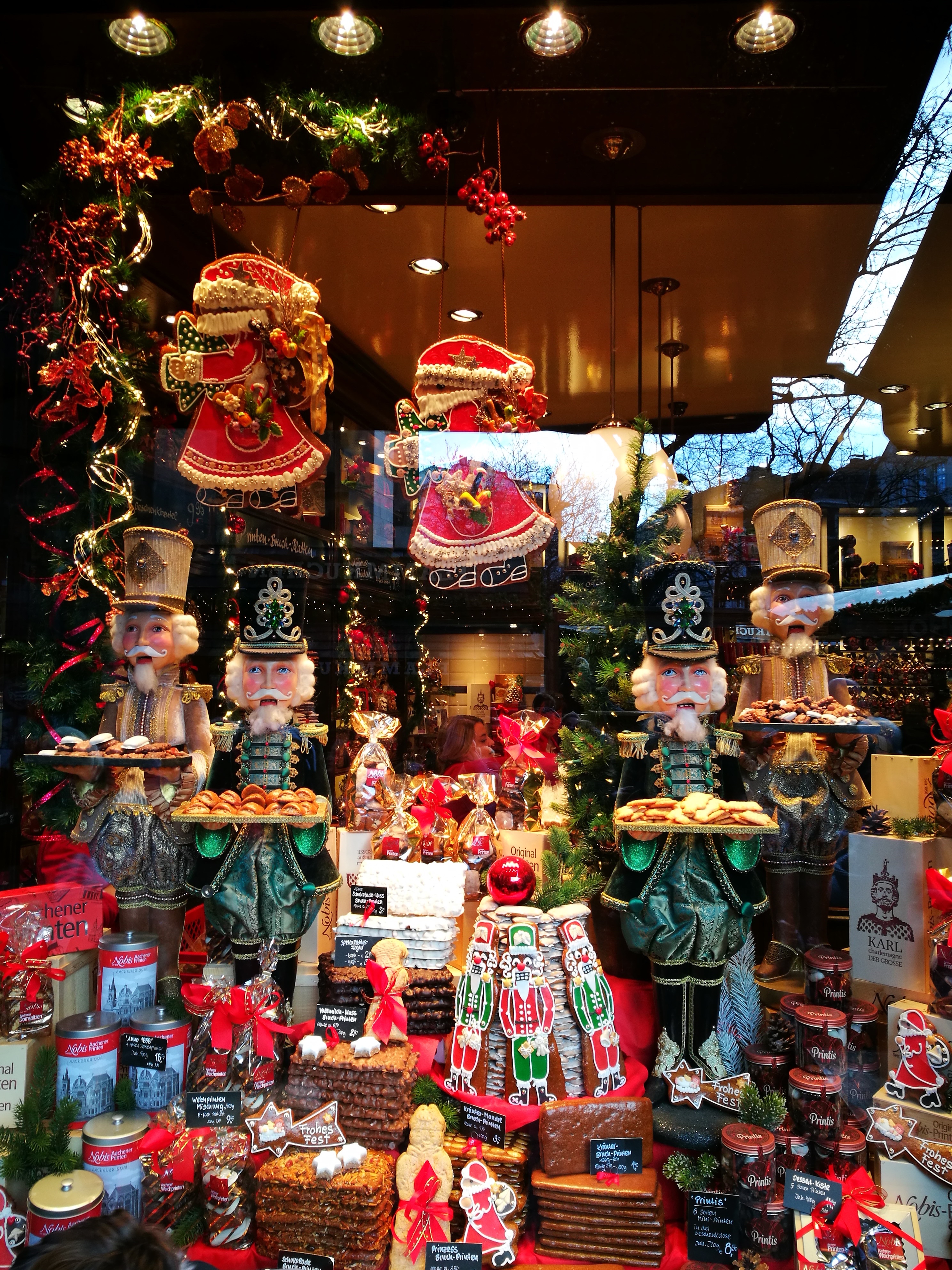 Además, de la variedad culinaria, con esa mezcla de aromas en los que se mezclan las crepes, las castañas, el vino caliente con especias, impregnando inevitablemente, el ambiente!. Poco importa si hace frío, si cae nieve, todo fluye en una atmósfera entrañablemente familiar!. Además se venden sus famosas galletas Aachener Printen, que son las protagonistas de la fiesta!.
