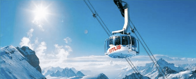Cada montaña tiene su teleférico que lo hace diferenciador, allí también se puede ver un derroche de desarrollo y tecnología, no podía ser de otra forma; es el pais con más teleférico por habitante. El de la foto es el de TITLIS … Un espectáculo de aparato donde se puede ver a plenitud ese majestuoso paisaje que ofrece la naturaleza en Suiza!