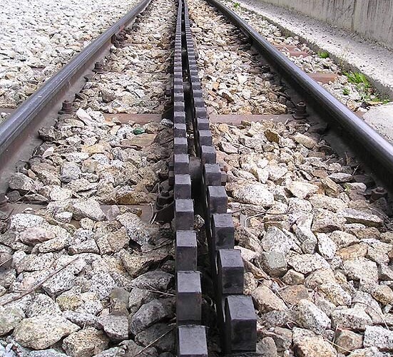 El tren cremallera es algo mucho más inusual que el teleférico. Sin embargo aquí, supone un sustitutivo o incluso un complementario del teleférico. Este medio de transporte sirve para salvar pendientes tremendamente altas donde no sea conveniente la instalación de cables para el teleférico, mucho más altos y abundantes que los del tren. Suiza cuenta con el tren cremallera más empinado del mundo como es el del monte Pilatus que llega a salvar pendientes del 40%.