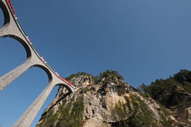 La sección de Thusis a Tirano de la célebre vía de ferrocarril fue considerada Patrimonio de la Humanidad por la UNESCO en 2008, celebrando la extraordinaria proeza de ingeniería que permitió su construcción. La vía del ferrocarril fue construida entre 1896 y 1904, e incluye unos impresionantes 196 puentes y 55 túneles.