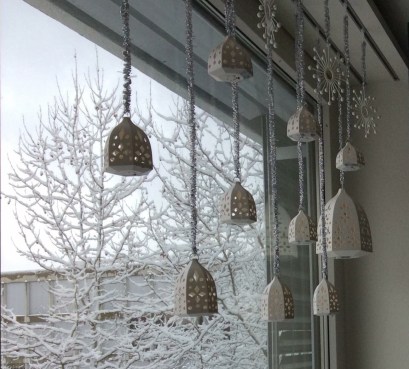 Esta foto desde mi ventana me gusta mucho, se refleja perfecto el complemento del invierno con la navidad. Es muy común ver adornados los cristales de las ventanas con miltiples figuras de navidad, iluminadas, ahora hay guirnaldas que caen en diversas formas y con diseños muy bonitos.